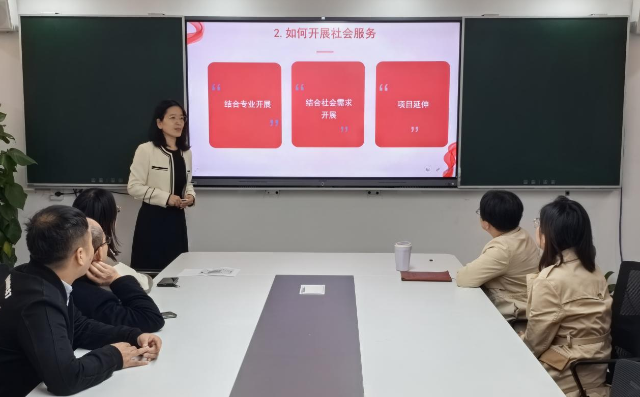 会上,楼芸介绍了她在过去五年中所参与标志性社会服务项目,包括为企业提供标准研制服务、为政府相关部门提供专业调研服务等,重点讲解了教师为什么要参与社会服务、如何开展社会服务、社会服务如何反哺教学。她强调,社会服务对于教师个人成长和职业发展的重要性,鼓励更多的高职教师积极参与到社会服务实践中去。