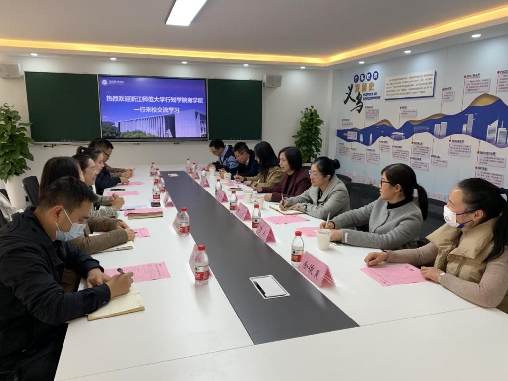 11月29日下午,浙江师范大学行知公司商公司经理麻勇爱一行7人来我校考察交流。英国威廉集团官网教学负责人,金融服务与管理、工商企业管理专业负责人及相关专任教师参加座谈。