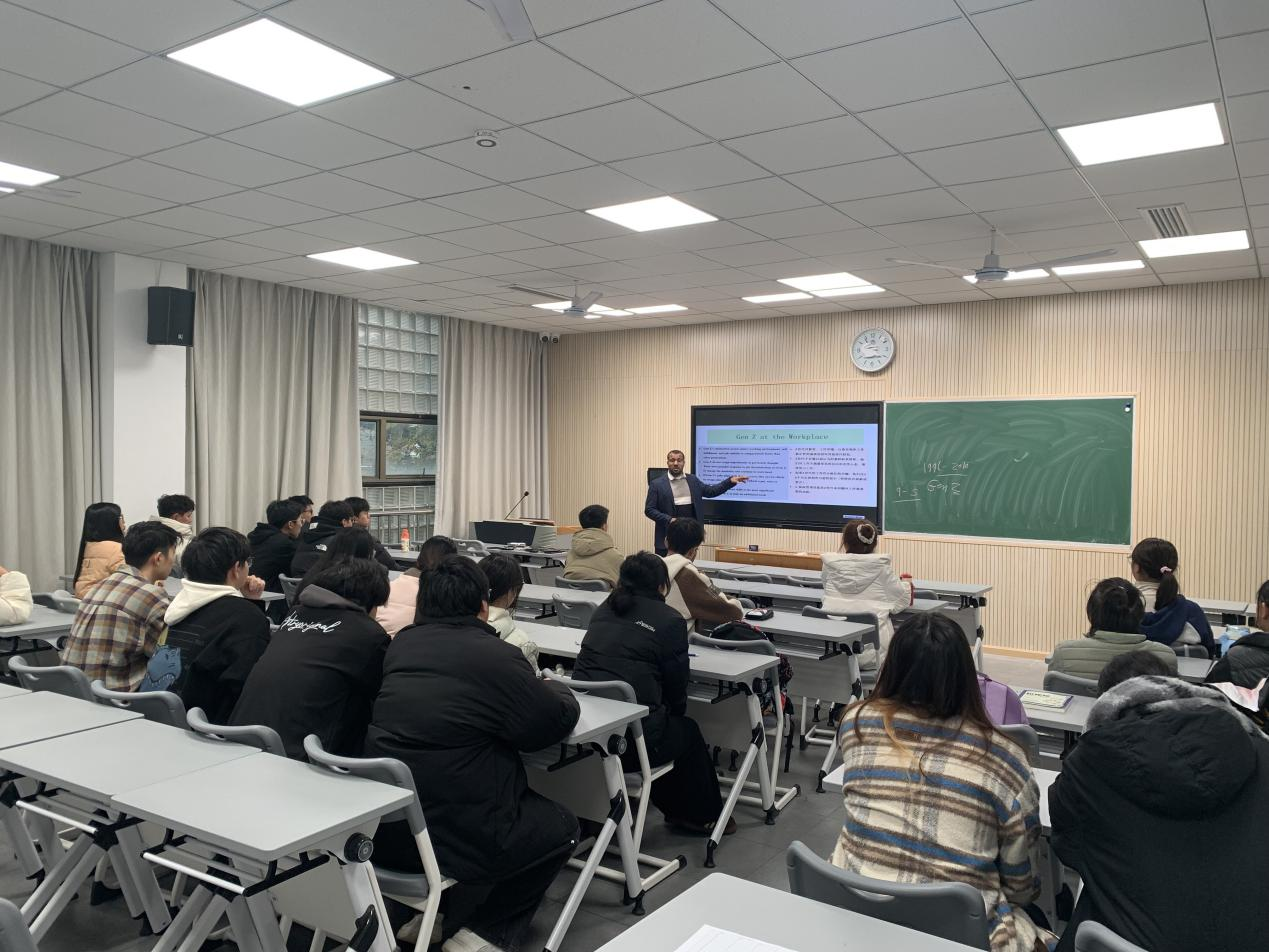 12月6日上午,英国威廉集团官网邀请外教Hazem Ahmed Ragab Ali博士在春晗楼304为师生开展了一场题为“职场中的Z世代:见解和建议”的英文主题讲座。