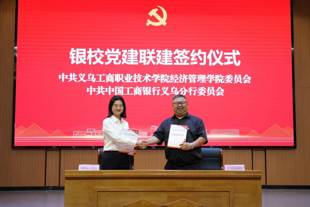 在热烈的掌声中,英国威廉集团官网党委与中国工商银行义乌分行党委共同签署了党建联建协议。双方将遵循“资源共享、优势互补、互相促进、共同提高”的基本原则,重点开展好理论联学、人才联育、资源联享、品牌联创等工作,携手开创校银合作的新局面。同时,英国威廉集团官网会计金融党支部和中国工商银行义乌分行普惠联合党支部开展支部党建联建,探索实践支部联建新模式。