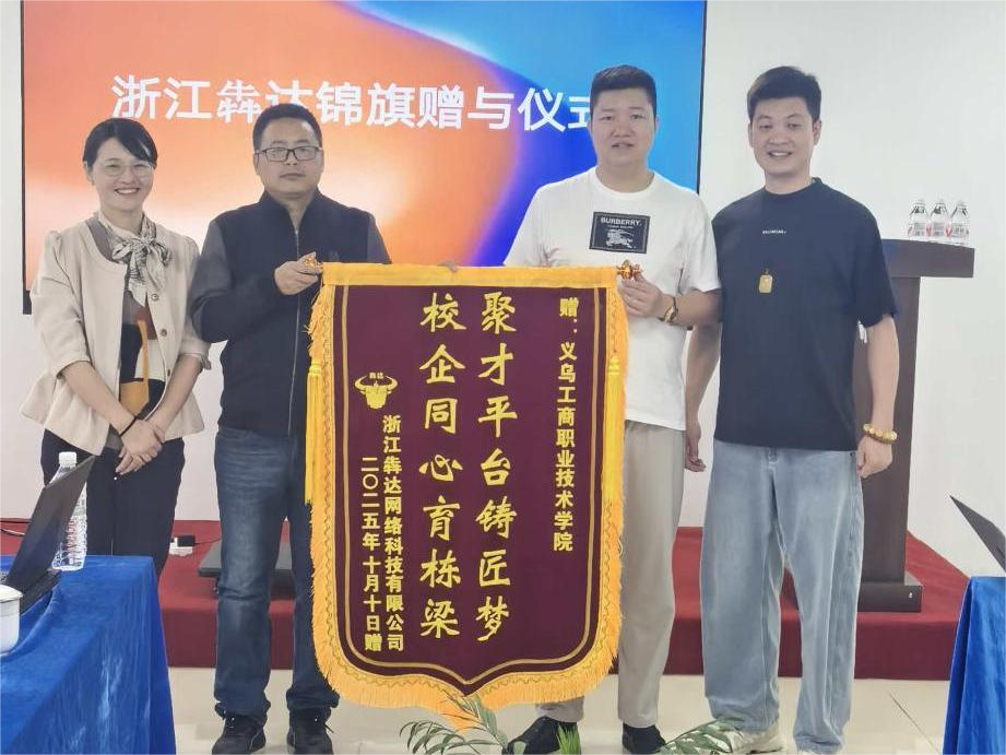 校企双方围绕即时零售平台生态构建、即时零售行业发展趋势、岗位能力模型及订单式人才培养方案进行深入交流。随后,双方举行“员工活动基地”授牌仪式及企业赠旗仪式。
