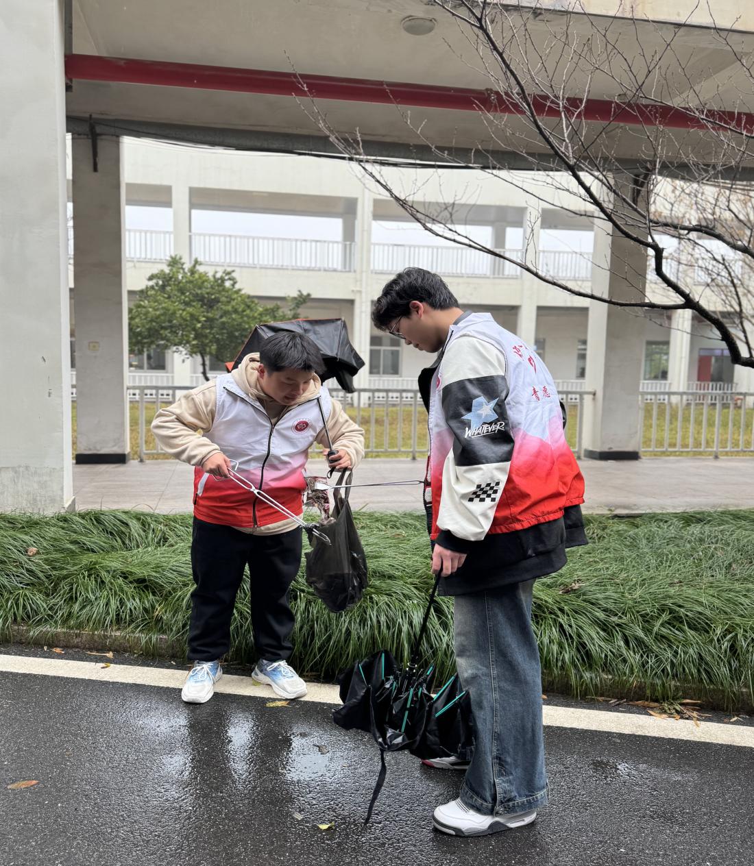 “美丽义工商,我们在行动”。活动当天,同学们身着统一志愿者服,手持垃圾袋,对校内的公共区域以及校园的林荫大道进行了卫生检查和垃圾清理,认真地搜寻和清理着散落在各个角落的垃圾,从道路两旁的纸屑、烟头,到草丛中的塑料瓶、包装袋。“小经灵”们用实际行动为校园播撒下心中的绿色种子,增添一抹清新。