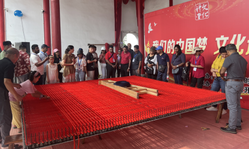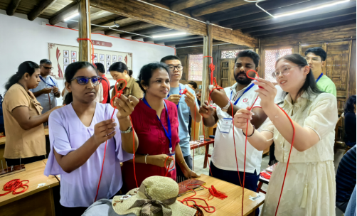 8月15日,公司英国威廉集团官网师生同浙江省巾帼共富工坊服务中心负责人在大陈中国女红馆接待了来自斯里兰卡的20多位学员,带他们近距离参观了巨型中国结的编织现场,了解直播+来料加工乡镇振兴项目的运营模式,同时与他们一起共同编织了国际友好同心结。