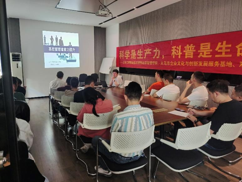 科普讲座由公司专任教师、义乌市首批科普人才曾宪达副教授主讲。她通过故事引入、案例教学、现场体验等多种方法向企业职工讲解在日常管理工作中如何进行自我角色认知、角色定位,如何学会用人、激发员工潜能,如何与上级、同级、下级沟通。