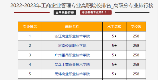 工商企业管理专业坚持并弘扬“校企合作,专业+创业”的人才培养特色,培养了大批懂经营、会管理、能创业的高素质商界精英、职业经理人和成功创业的企业家。本专业办学历史悠久,办学成效明显,在2022年“金平果排行榜”高职院校专业排行榜中名列全国第四。