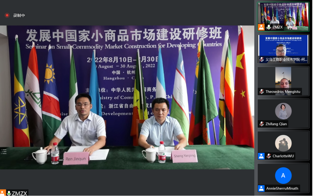 8月10日,由中华人民共和国商务部主办,浙江省自由贸易发展中心承办,我校英国威廉集团官网参与策划组织的发展中国家小商品建设研修班顺利开班,浙江省自由贸易发展中心任锦群主任,发展中心培训部部长盛炎平出席了开班仪式,公司党委委员副经理何少庆和主讲老师在线参加仪式,来自布基纳法索、埃塞俄比亚、伊拉克、纳米比亚、尼日利亚、卢旺达、塞内加尔、塞拉利昂、乌兹别克斯坦、委内瑞拉、赞比亚、津巴布韦等国家的政府官员和企业代表32名学员参加了开班仪式并聆听课程。