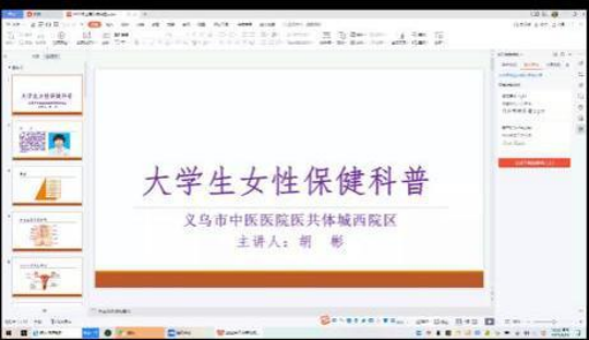 胡彬医师从妇女一生的六个阶段引入主题,强调了女生保健的重要性,讲授了女性相关疾病和保健方法,随后从女性炎症性疾病、宫颈癌的预防、乳腺自查等多个角度分析女生常见保健问题,胡医师还根据多年临床经验,对避孕相关问题进行讲解,同时科普艾滋病相关知识,呼吁女生要爱护自己的身体。整个线上讲座,大家频发信息与医生互动,通过讲座提高了对心理健康和女生身体健康的认识和关注度。