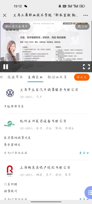 直播过程中,各用人单位负责人依次进行直播展示公司情况,从员工广泛关注的要点作为切入点,着重介绍了企业经营范围,服务类型,晋升机制,招聘岗位数量及要求等内容,同学们也积极的进行直播互动。