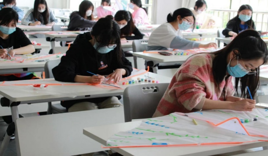 活动中,同学们挥动手中的画笔,用颜色点缀创意,用图案装点天空。手绘出美丽的风筝,放飞梦想和希望,将春天的喜悦和情趣发挥至极致。其中,栩栩如生的动植物、鲜艳的五星红旗、庄严肃穆的天安门、可爱的冰墩墩等形象在他们的画笔下活灵活现。