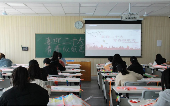 4月4日,群英湖面波光粼粼,湖畔操场欢声笑语,百余名师生在风筝上画出“诗和春天”,在操场上放飞对“喜迎党的二十大”的美好祝福。