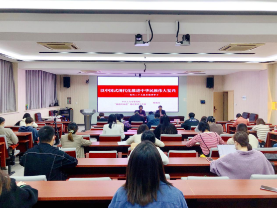 会上,杨雪萍首先介绍了党的二十大的基本情况,通过习近平总书记提出的“五个牢牢把握”的要求,结合五组关键词,深入浅出地解读党的二十大报告,阐释以中国式现代化推进中华民族伟大复兴。聚焦义乌地方发展实际以及公司教书育人的重点任务,结合实例讲述党的二十大关键数字背后的深度内涵,讲述如何答好中国之问、世界之问、人民之问、时代之问。