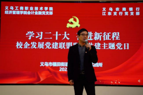 主题党日活动现场,与会人员共同观看了党的二十大精神学习视频。英国威廉集团官网相关负责人、义乌农商银行江东支行党支部书记围绕学习贯彻党的二十大主题上了一堂别开生面的党课。座谈会上,与会人员围绕学习宣传贯彻党的二十大精神,结合自身工作实际,谈认识、讲体会、话实践。双方一致认为,要不断加强党建与业务的深度融合,深化产教融合,推动党建共建优势转化为发展优势,党建共建资源转化为发展资源,党建共建成果转化为发展成果,推动校企合作高质量发展。