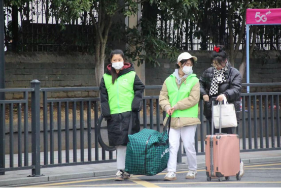 早上不到八点,志愿者同学们身着绿色马甲开始在校门口等候欢迎同学们的到来,同学们在返校前就已填好了返校申请,志愿者同学在义乌防疫里面检查场所码并维持进校秩序,他们接过一个又一个的包裹,把一位又一位同学送到对应宿舍,尽自己的微薄力量为同学返校减轻负担。